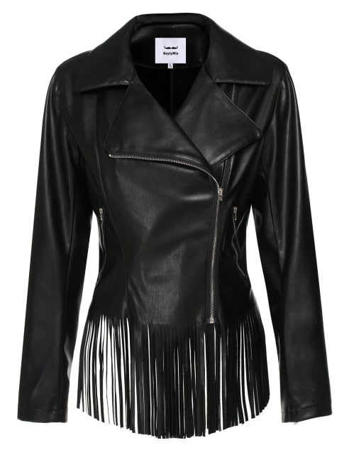 jacket Design black Long Leather Jacket Tassel Sale Women Hot street Coat Women style Fashion Motorcycle coats Slim bomber New
