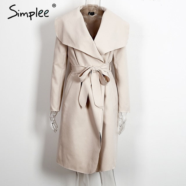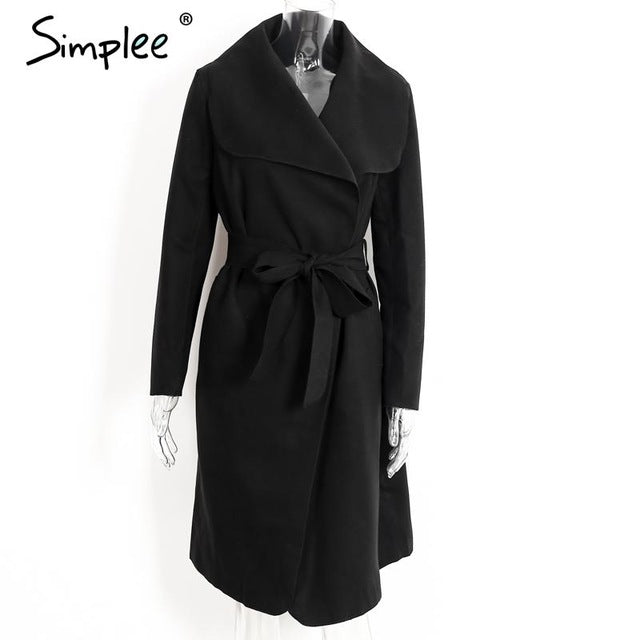 Simplee Black ruffle warm winter coat Women turndown long coat collar overcoat female Casual autumn 2016 pink outerwear