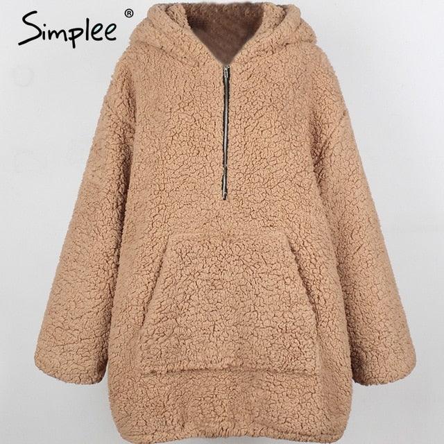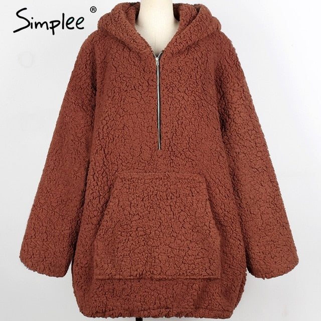 Simplee Faux lambswool thick women jacket coat plus size Winter warm teddy coat Hooded fur coat 2018 outerwear female overcoat